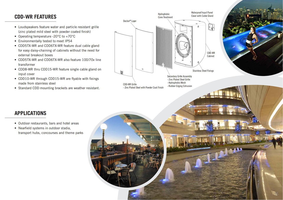 它也可以作為補(bǔ)聲系統(tǒng)與較大尺寸的CDD系列型號(hào)一起用,并且搭配SX低頻揚(yáng)聲器,可以再現(xiàn)令人驚訝的高水平音樂(lè)節(jié)目。