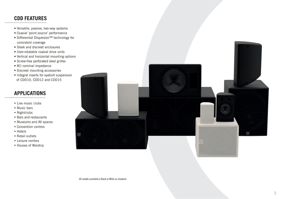 無(wú)論是一個(gè)酒吧、一個(gè)音視頻固定安裝工程、教堂或極富聲望的夜總會(huì),CDD系列都可以滿足它們的需求。CDD被證實(shí)是一種一站式解決方案;六種雙向全頻的 同軸系統(tǒng)——從微型的CDD5一直到強(qiáng)力的CDD15,搭配高性能超低音揚(yáng)聲器——涵蓋了基本上所有的安裝應(yīng)用環(huán)境。