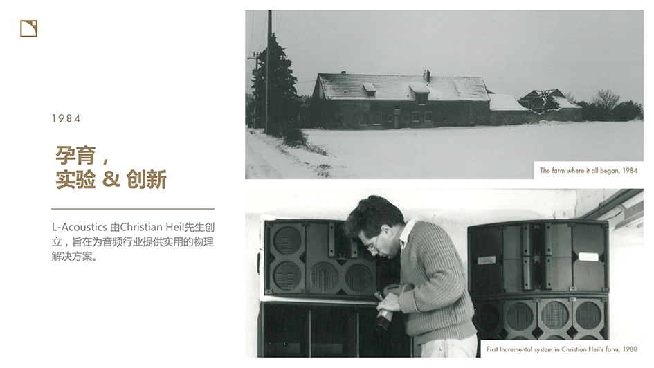 這一切都始于現場音樂的聲音。1977年,身為粒子物理學家的Christian Heil先生參加了Pink Floyd的音樂會。他立刻就被迷住了,想要更深入地沉浸在聲音傳播的迷人世界中。這場音樂會點燃了最初的火焰,同時也點燃了他畢生的熱情和使命感,以至于在15年后徹底打破和改變了整個專業擴聲領域。但是我們有點超前了……L-Acoustics 成立于1984年,以服務現場演出行業為宗旨,為專業音響從業人員提供實用的解決方案。粒子物理學家Christian Heil 博士并非音頻行業人士,但他卻以一種全新的思維方式并用其更加明亮的眼睛和更敏銳的耳朵,探索并獲得了為觀眾提供高質量聲音的科學和藝術。