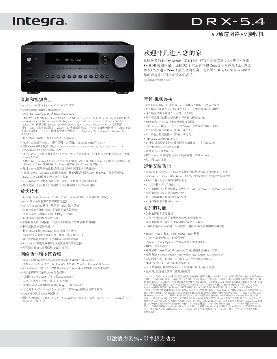 9.2通道:7.2.2/ 5.2.4 系統(tǒng),Dolby Atmos® ,DTS:X®