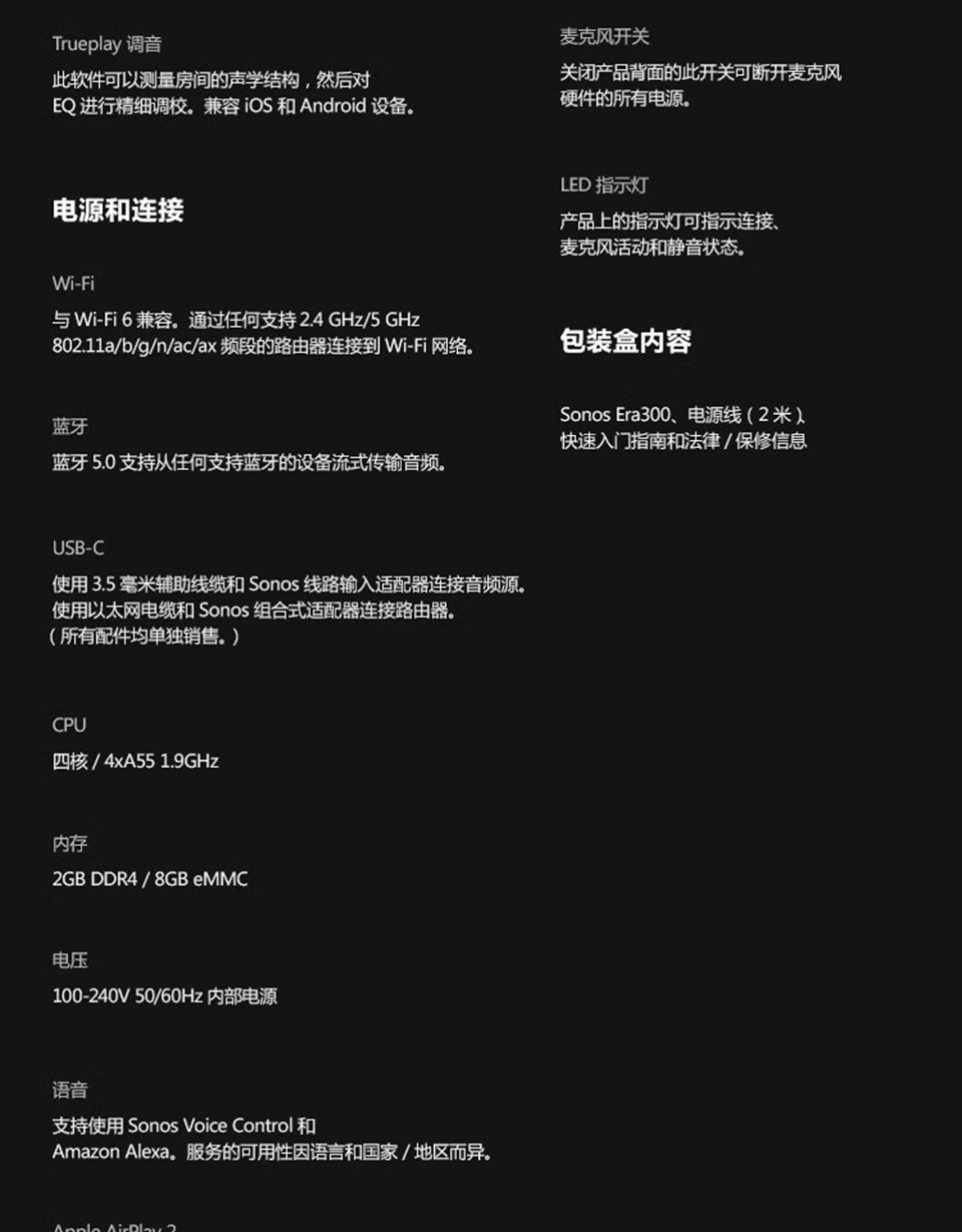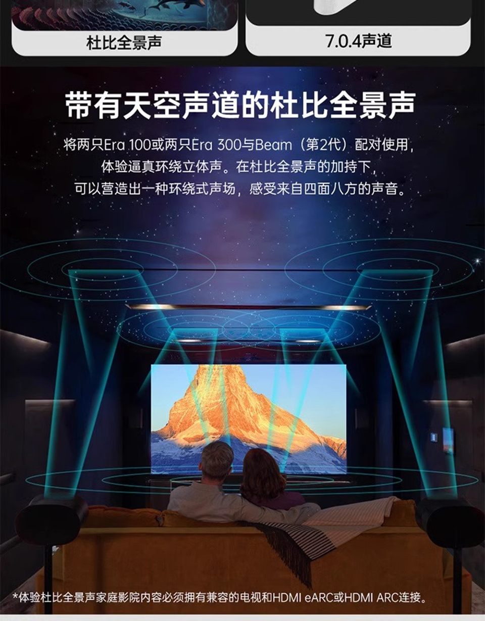 音效:3.0聲道,Trueplay調(diào)音(支持IOS和安卓),EQ調(diào)節(jié),杜比全景聲,Apple Music空間音頻,對(duì)白增強(qiáng),夜間模式