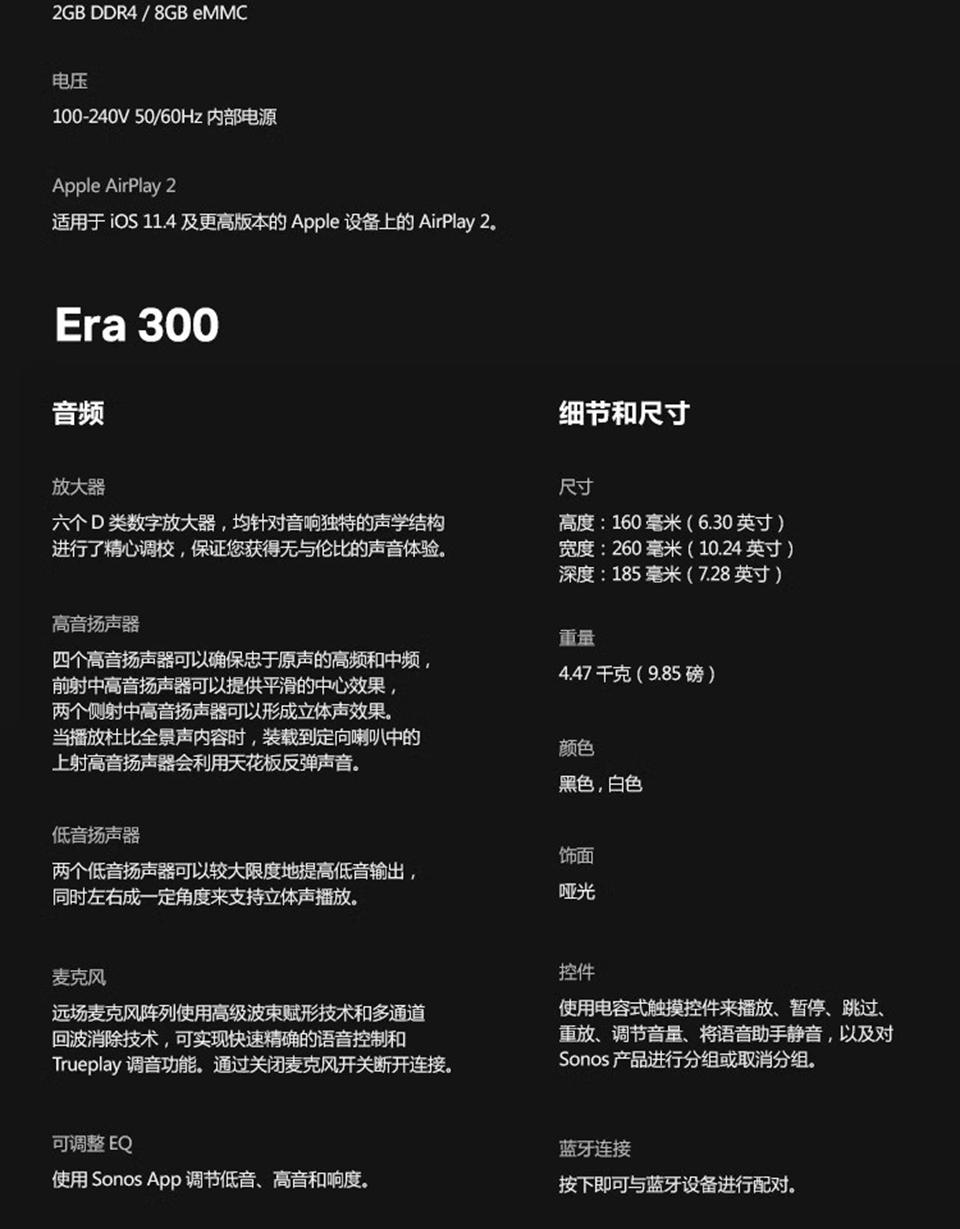 音源:Airplay2,內(nèi)置QQ音樂(lè),網(wǎng)易音樂(lè)等100+流媒體平臺(tái),eArc