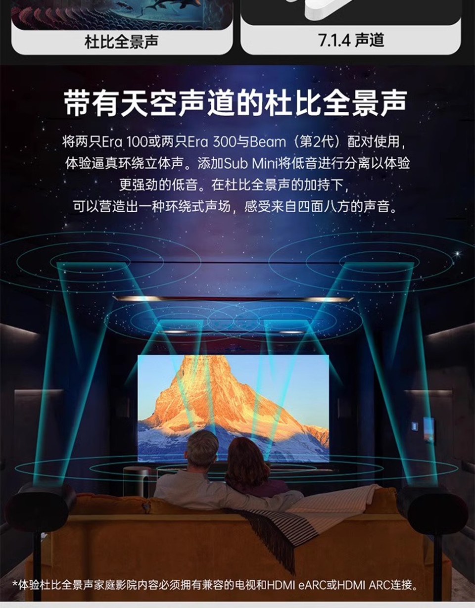 sonos Beam G2+Sub Mini+Era 100 (7.1.4全景聲)