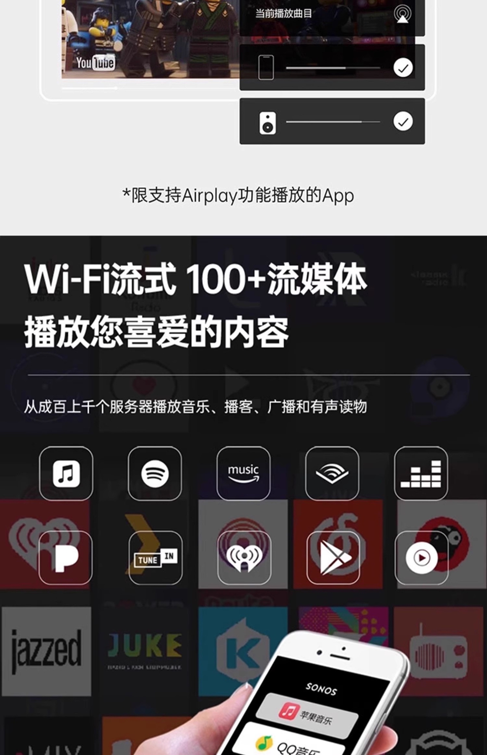 流媒體:Airplay2,內置QQ音樂,網易音樂等100+流媒體平臺