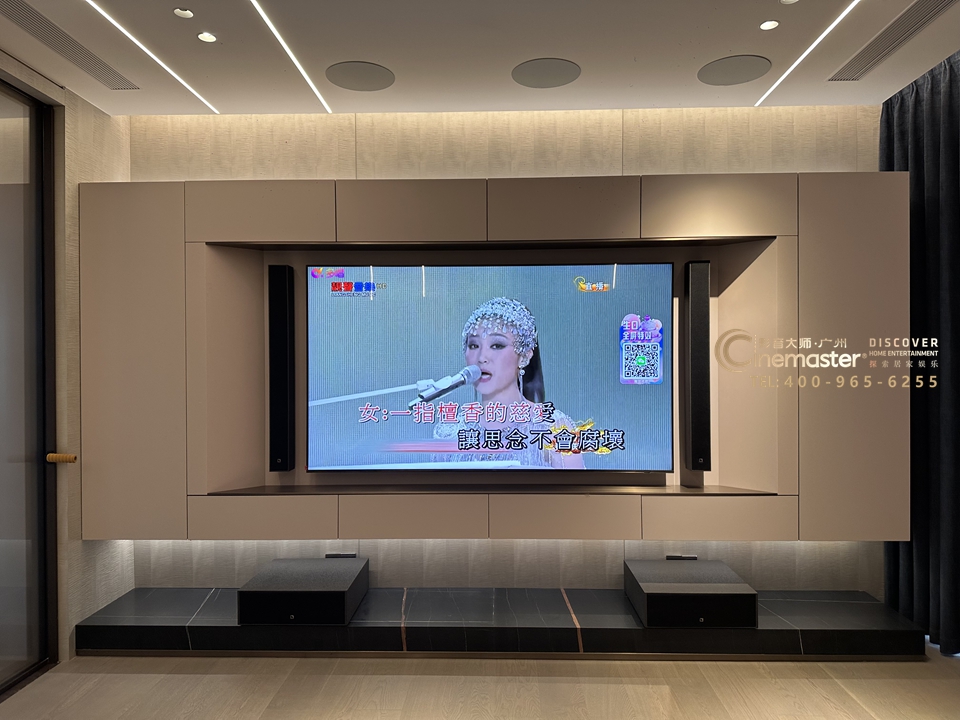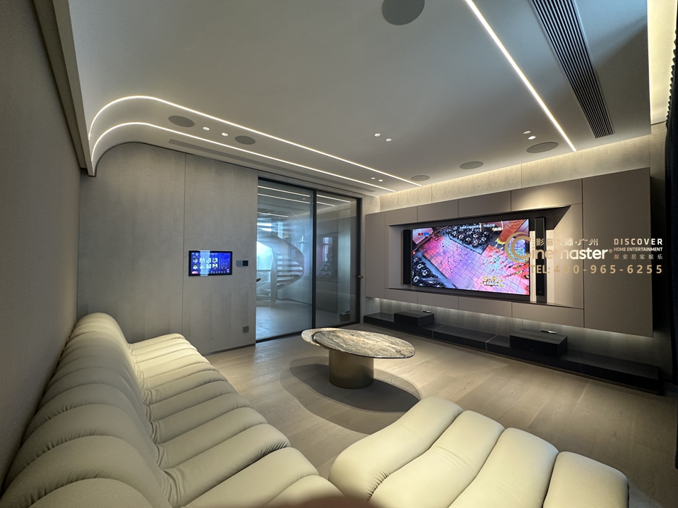 主音箱、中置音箱、環繞音箱均嵌入到天花,做到與天花合二為一,確保簡潔美觀