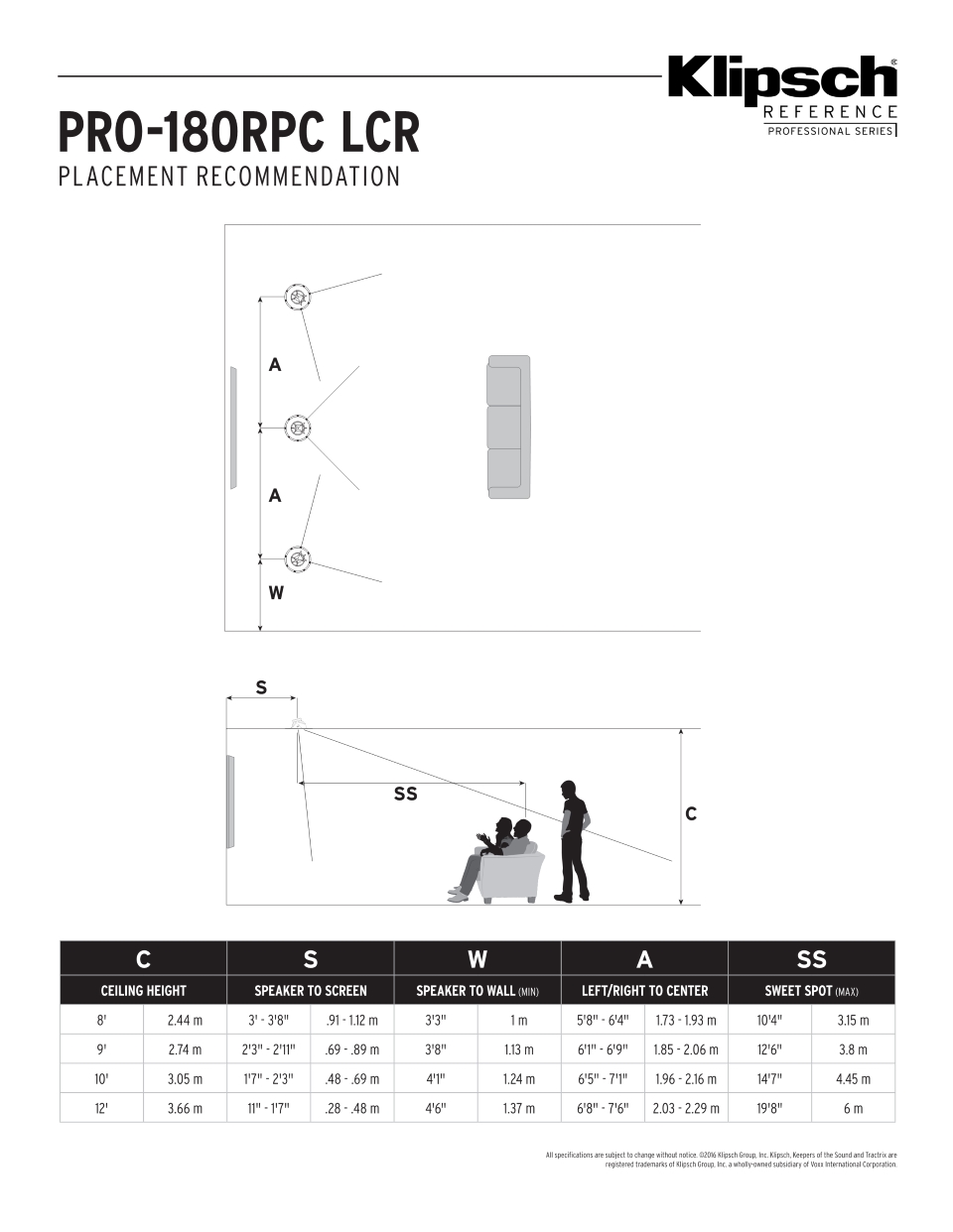美國 Klipsch/杰士 PRO-180RPC-LCR 中置音箱 1只